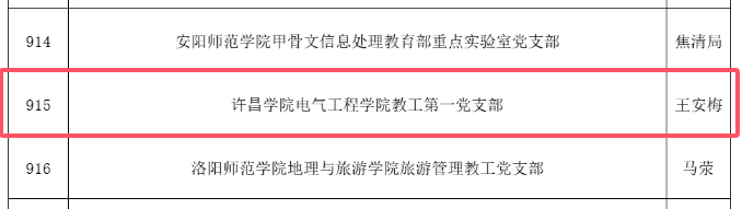 近年来,教工第一党支部在组织建设、思想政治引领、教师成长服务、实践育人、社会服务、党员先锋模范作用发挥等方面取得了显著成绩,承担有国家级一流本科专业、国家级一流本科课程、河南省工程研究中心、河南省产教融合品牌项目等教学科研项目,是首批全国高校党建工作样板支部。党支部书记王安梅副教授在党支部建设、团队建设、课程建设、教学科研等工作中业绩突出,作为负责人的教学团队入选“河南省本科高校课程思政教学团队”,任教课程入选国家级一流本科课程,先后获得许昌市“巾帼标兵”、许昌学院“十佳青年教师标兵”等荣誉称号,并入选学校首批教工党支部书记双带头人工作室。