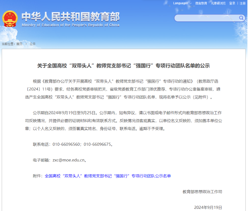 近日,教育部公布《关于全国高校“双带头人”教师党支部书记“强国行”专项行动团队名单的公示》,我院教工第一党支部成功入选。据悉,全国有1486个高校教师党支部入选“强国行”专项行动团队,我省高校共有67个教师党支部入选该项目。
