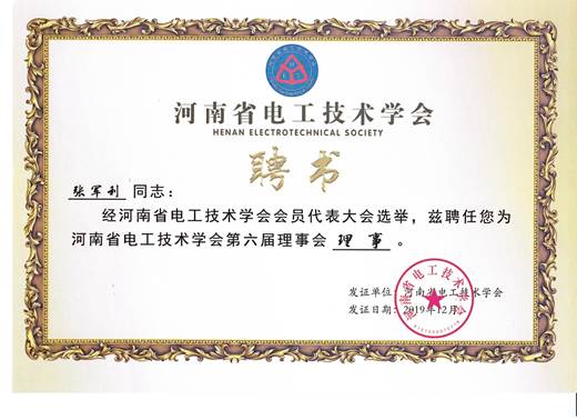 12月19日至20日,河南省电工技术学会第六届会员大会暨学术交流会在郑州轻工业大学召开。大会听取并审议了河南省电工技术学会第五届理事会工作报告和财务报告,并表彰了河南省电工技术学会第五届理事单位及理事。我校被评为理事会先进单位,院长张元敏被评为先进个人。