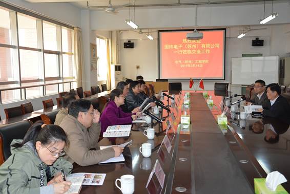 3月14日上午,固纬电子(苏州)有限公司郭国栋、王志耀来学院考察交流,双方在学院三楼会议室召开交流会。院长张元敏、副院长王红玲、白政民和部分教师参加了本次交流会。