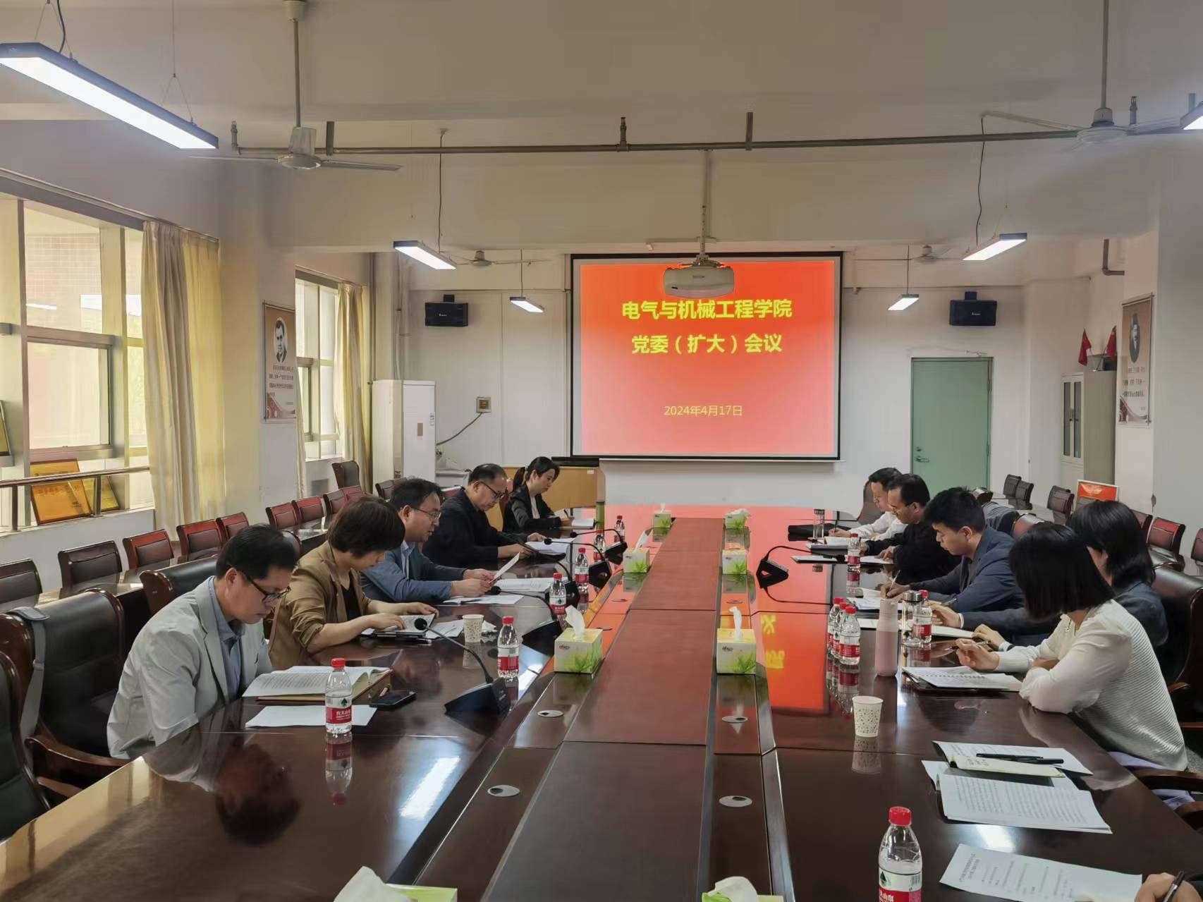会上,学习了习近平总书记关于党纪学习教育的重要讲话和重要指示精神,传达了省委常委会(扩大)会议和学校党委(扩大)会议有关党纪学习教育的安排部署,并传达了《许昌学院党纪学习教育实施方案》,研究通过了《电气与机械工程学院党纪学习教育实施方案》。