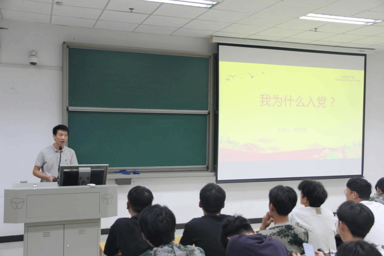 张老师剖析 “为什么入党” 的现实意义,详细介绍入党条件、申请流程及培养考核环节(含积极分子选拔、发展对象确定等),强调思想汇报、政审、理论学习等关键要求。他还结合自身经历与身边案例,鼓励有入党意愿的新生坚定信念,以实际行动向党组织靠拢,理解“入党是荣誉更是责任”。