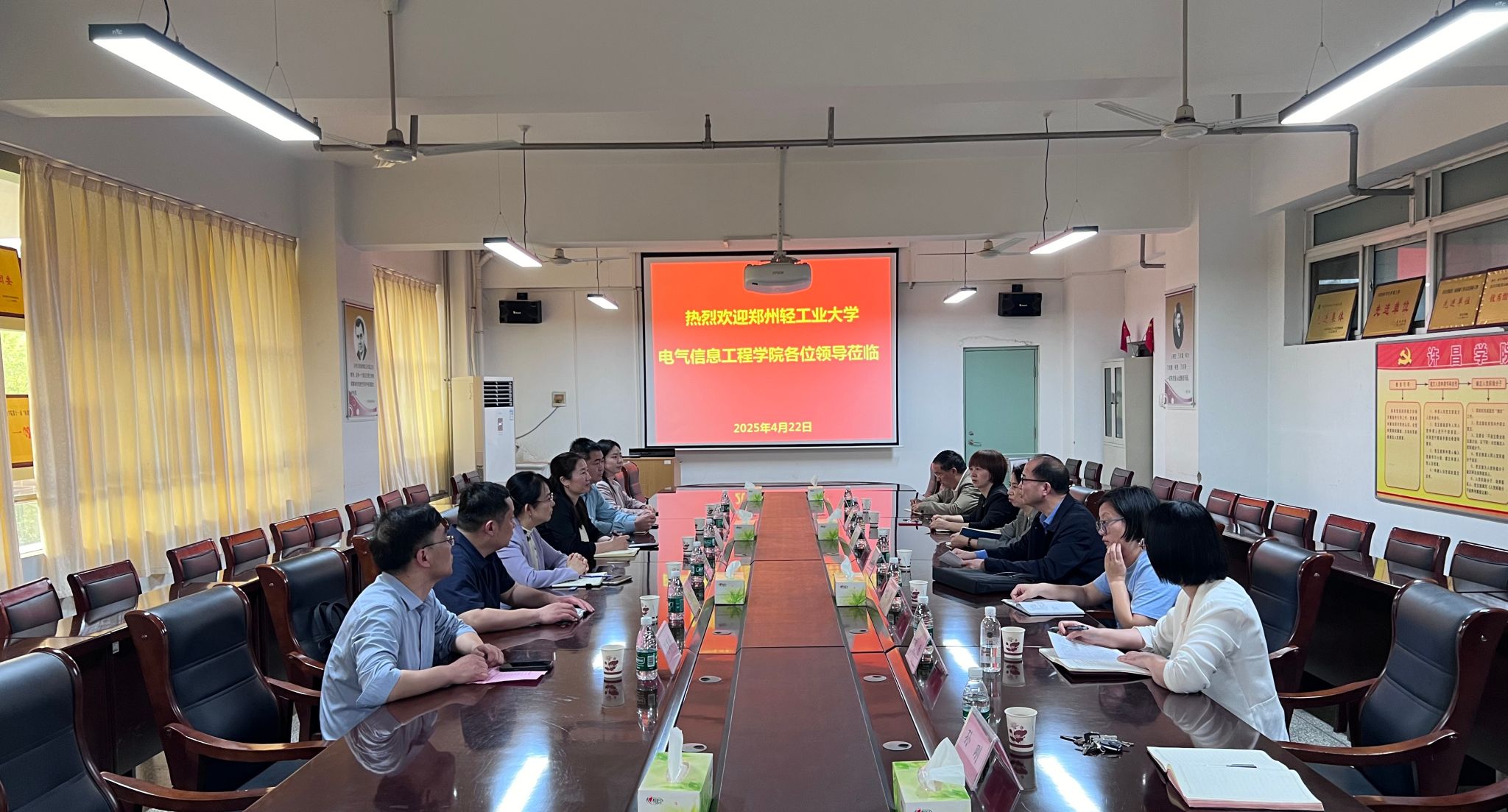 2025年4月22日下午,郑州轻工业大学电气信息工程学院党委书记张辉、院长和萍、党委副书记刘振卫等一行莅临许昌学院电气工程学院,学院副院长(主持工作)方如举、党委副书记边隽、副院长葛瑜、教工第一党支部书记王安梅及支部部分教师参加交流会议。双方围绕电气工程专业建设、学生实践能力培养及党建与业务融合发展等议题展开深入探讨,并实地参观实验室。
