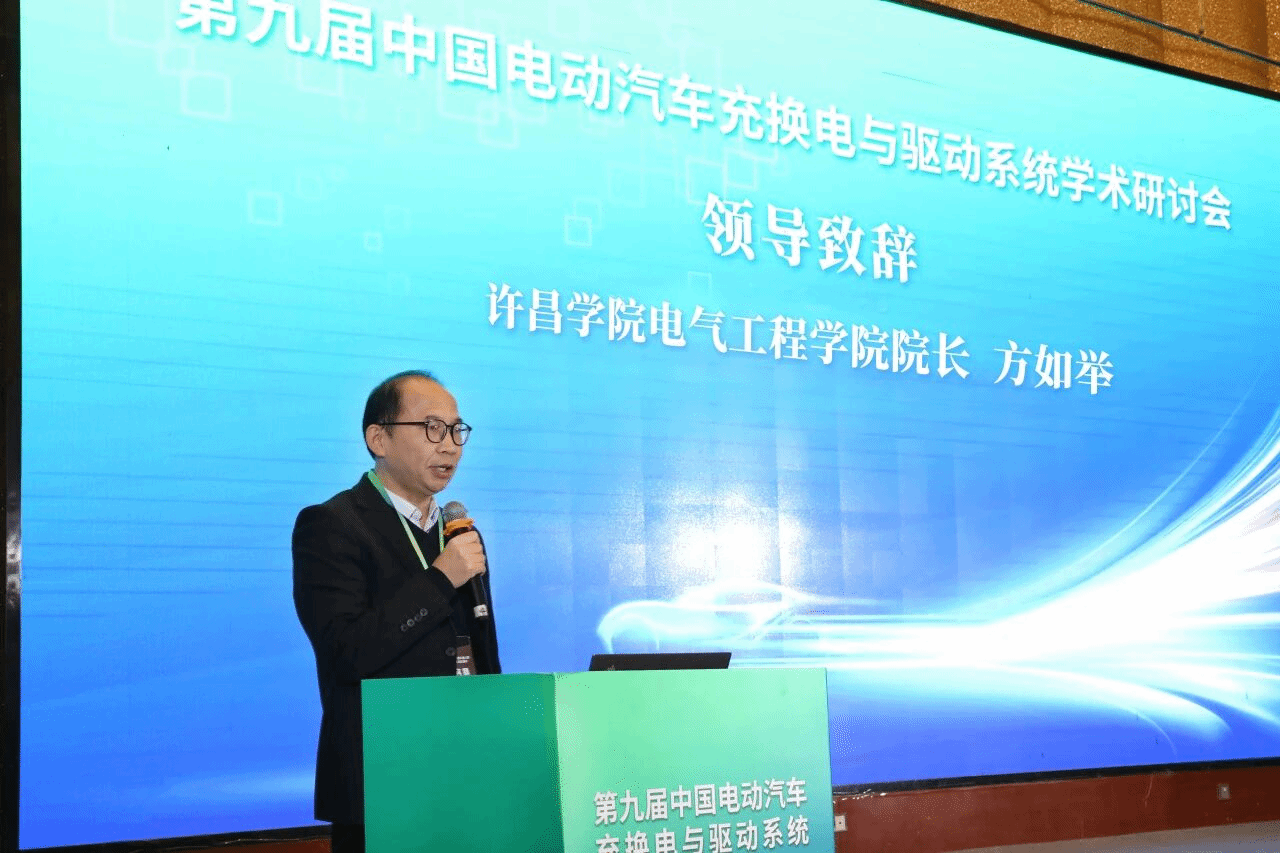 在开幕式上,许昌学院电气工程学院副院长(主持工作)方如举教授作为协办方代表致辞。他首先介绍了学院在专业建设、学科布局与人才培养等方面的扎实基础与特色优势,并指出,面对电动汽车产业的快速变革,高校必须坚持与产业前沿紧密联动,希望以此次会议为契机,进一步深化与各界的交流合作,共同推动充换电领域的技术创新与人才培养。