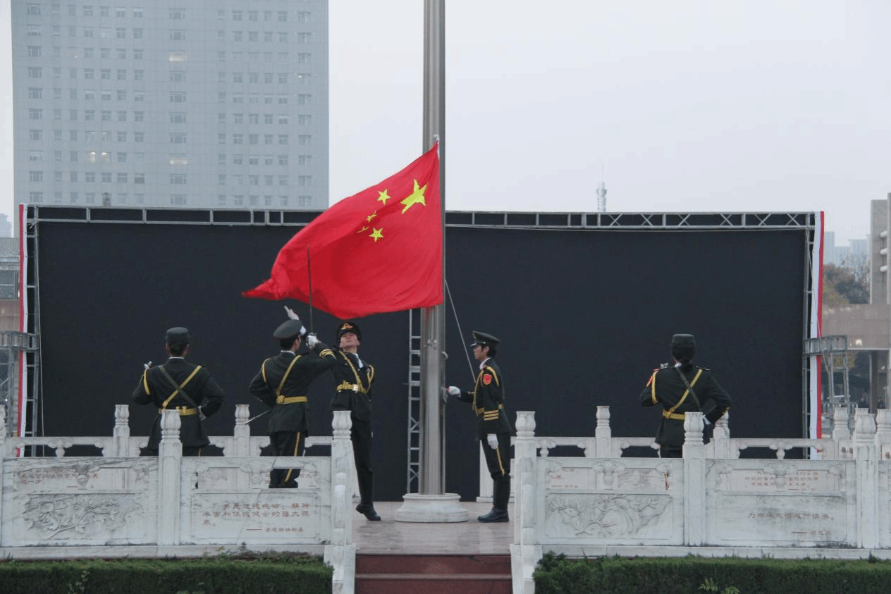 伴随着雄壮的《义勇军进行曲》,五星红旗冉冉升起,全体人员肃立行注目礼,齐唱国歌,现场氛围庄重肃穆,爱国情怀在晨光中凝聚升华。