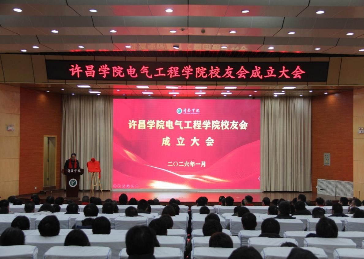 2026年1月18日上午,我院在学术报告厅举行校友分会成立大会,许昌学院副校长崔越、党委宣传部部长王林、人事处处长殷志锋、校友工作办公室主任翟广辉等学校领导,河南城建学院原副校长周颖杰等在我院工作过的老领导出席大会。许昌市电气行业协会常务副会长兼秘书长张新萍、许昌智能继电器股份有限公司党委书记范会君等应邀参加大会。我院领导班子成员、全体教师、学生代表以及70余名校友代表参加大会。大会由电气工程学院党委书记高凯主持。