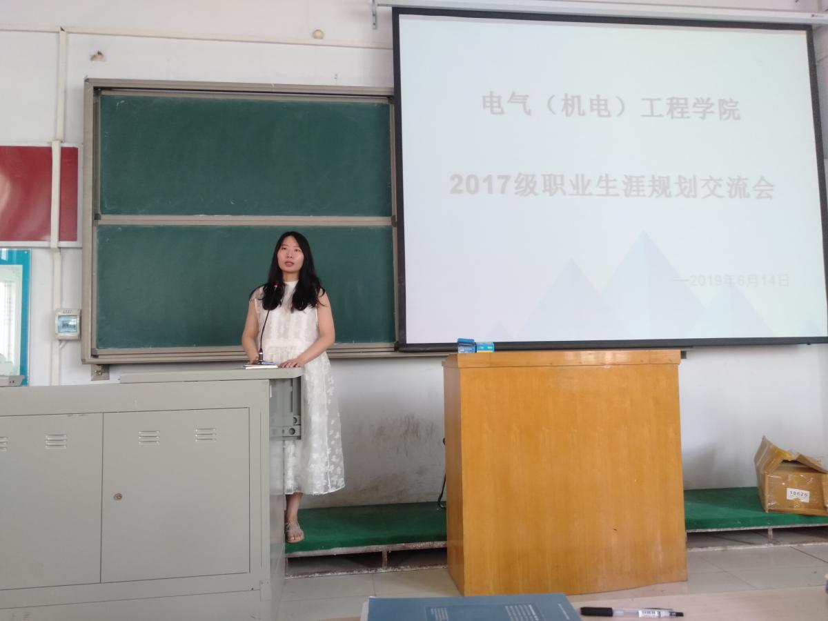2017级学生即将进入大三,为了使同学们更好地规划自己的职业生涯,2019年6月14日上午,电气(机电)工程学院2017级在A合五教室举行职业生涯规划交流会,本次会议由朱可心老师主持,2017级电气、电信、通信专业的全体同学参加。