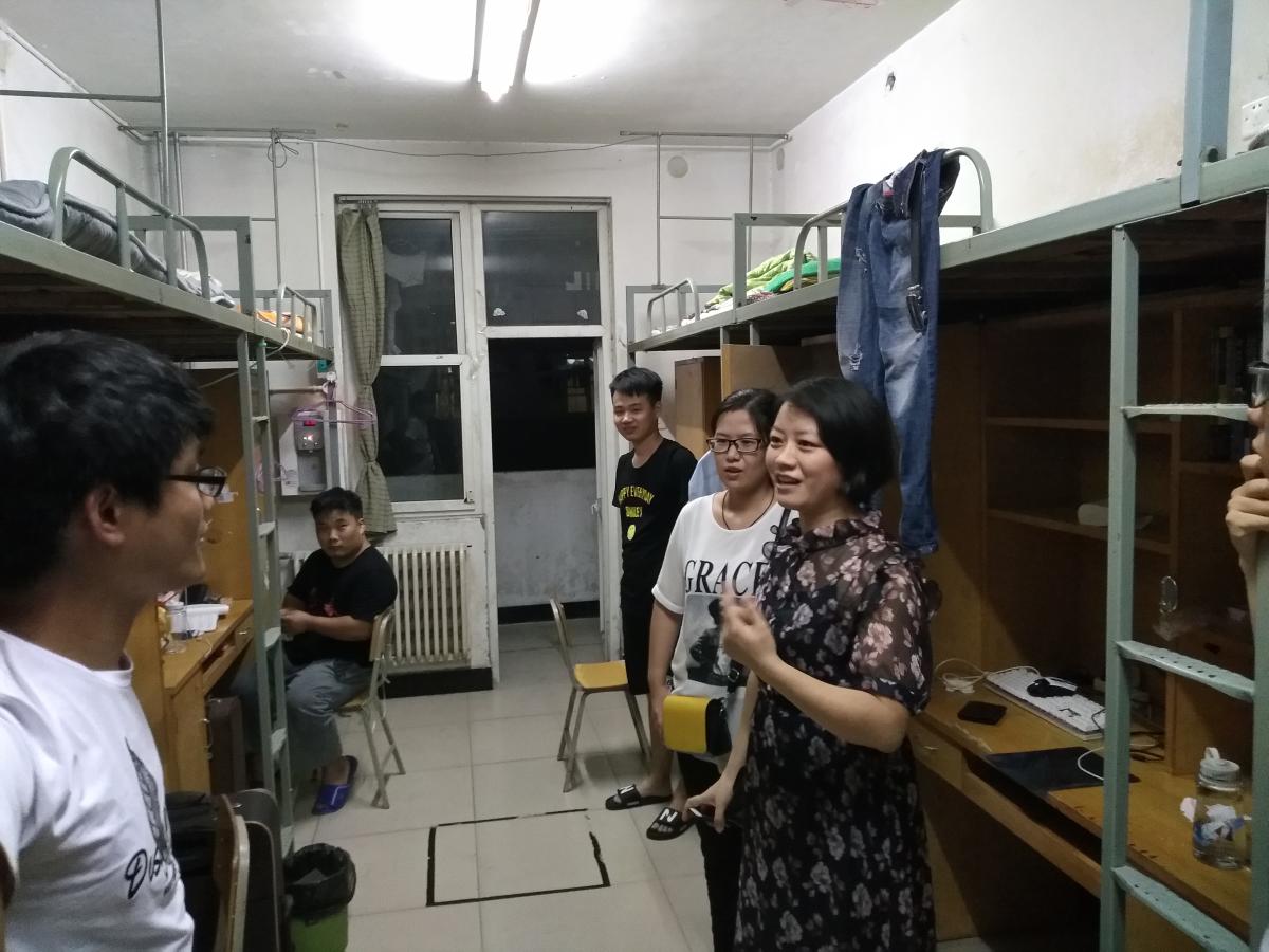 为深入了解我院2018级新生的入住与生活情况,帮助新生尽快适应新环境,9月9日晚,电气(机电)工程学院党总支副书记白晓玉,新生辅导员赵乐斌、严婵娟、平志惠老师一起走入新生所在寝室开展慰问。