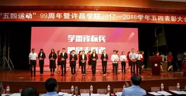 5月4日下午,纪念“五四运动”99周年暨许昌学院2017—2018学年五四表彰大会于大学生活动中心顺利召开。我院党总支书记李新生、副书记白晓玉、团总支副书记边隽代表我院出席本次会议,我院受表彰的集体和个人到会参与颁奖仪式。