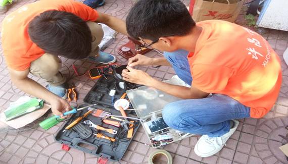 用心维修 真情奉献志愿者的微笑是城市最好的名片
