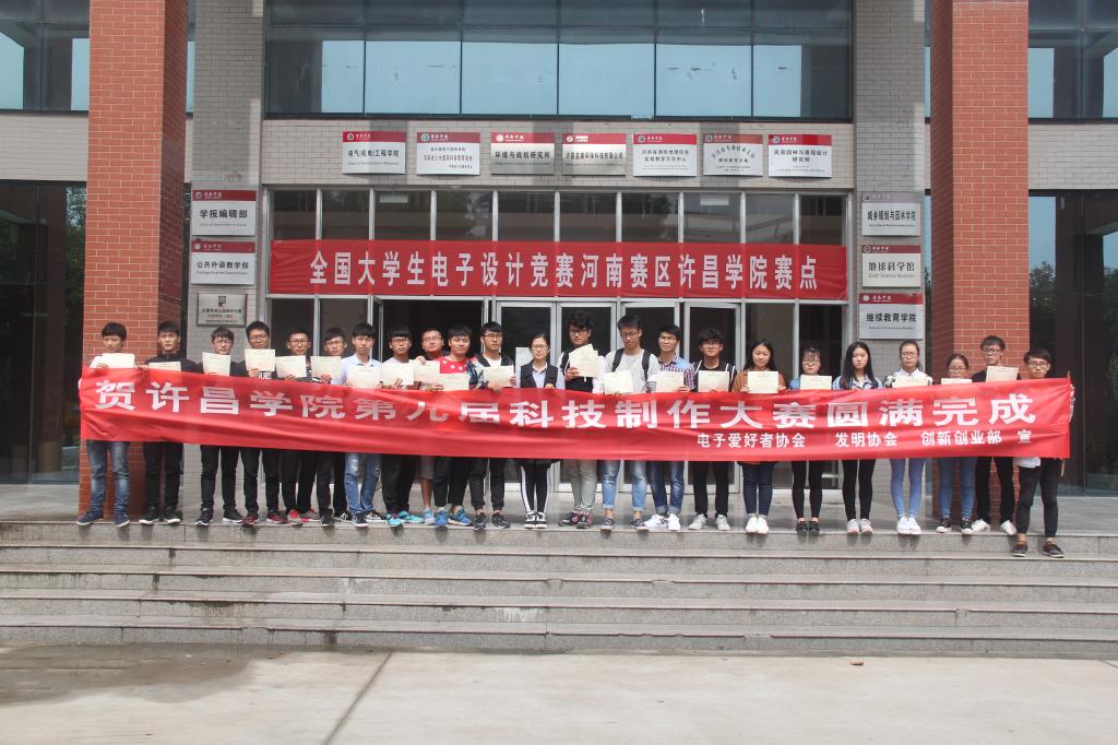 2017年9月28日,经过三轮激烈比拼,许昌学院第九届科技制作大赛取得圆满成功。此次比赛以丰富校园文化、激发学生的创新思维、提升学生的技术应用能力和科技创新能力为目标,由电气(机电)工程学院电子爱好者协会、发明协会、创新创业部联合举办。