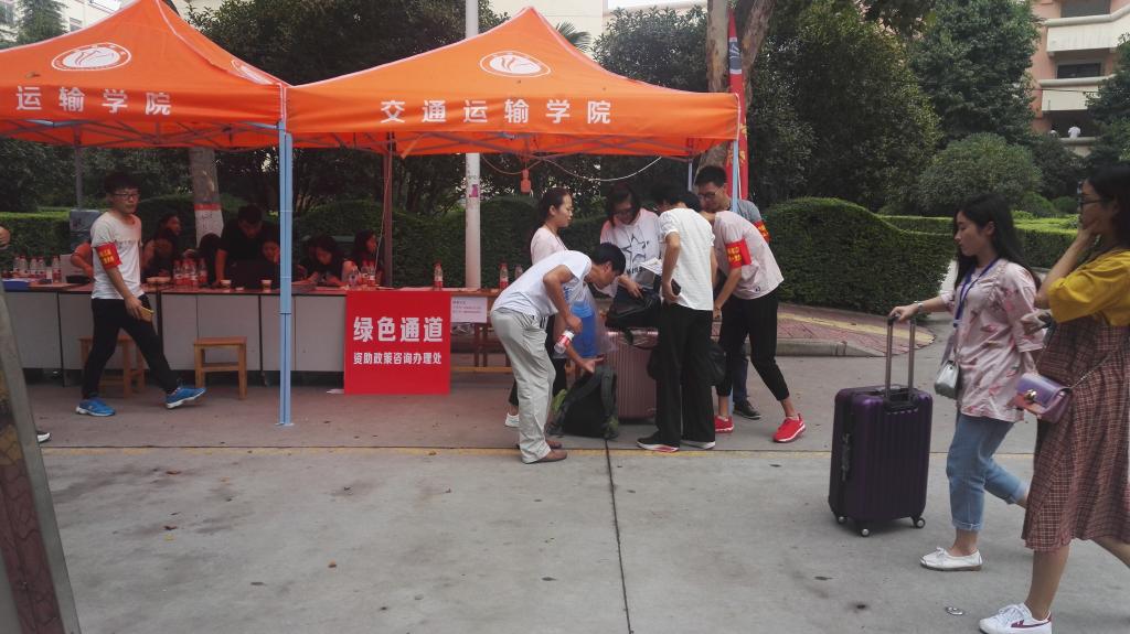 考虑到许多新生都由家长陪同注册、报道,在迎新活动开展期间,我院学生党支部分成两组,第一党支部在迎新服务站内向前来咨询的新生及家长答疑解惑,第二党支部主动当起导游,带领新生及其家长熟悉校园,并帮助新生找宿舍,搬行李。因新生报到当天有雨,但大雨浇不灭迎新的热情,他们全然不顾自身早已被淋湿,冒着大雨为新生搬行李、指路。