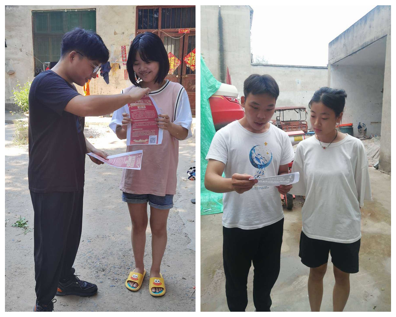 我院赵冬阳、程鹏举、代帅兵、付传印等同学在暑假期间作为“学生资助宣传大使”回家乡、回母校宣传国家学生资助政策,分别在自己的家乡通过入户走访、发传单等方式进行政策宣传,以自己在国家资助政策的帮助下安心学习、健康成长的亲身经历,向即将步入大学的学弟学妹和他们的家长宣讲“绿色通道”、奖助学金、国家助学贷款等资助政策。