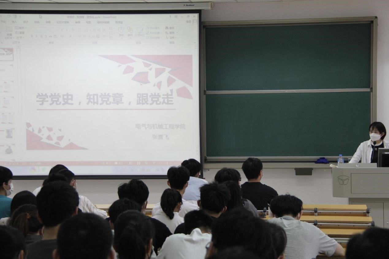 我院青年党员教师张雪飞同志以“学党史,知党章,跟党走”为主题,教育同学们做到学史明理,学史增信,学史崇德,学史力行。珍惜先辈们“抛头颅,洒热血”换来的和平,牢记“没有共产党就没有新中国”,成为“听党话,跟党走”的新时代青年。