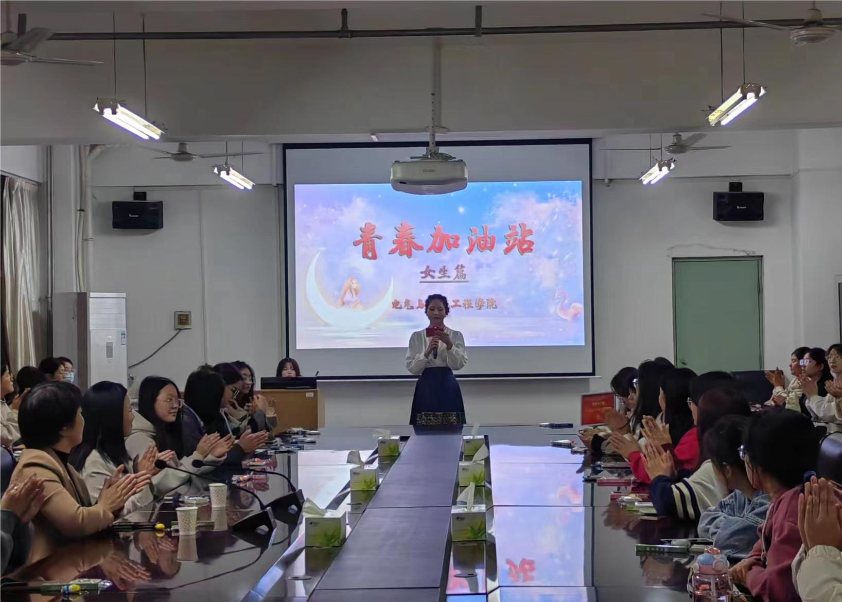 2023年10月19日晚,我院在理综楼309举办了第二期大学生思想引领品牌活动——“青春加油站”女生篇。我院领导老师和全体女生参加了活动。