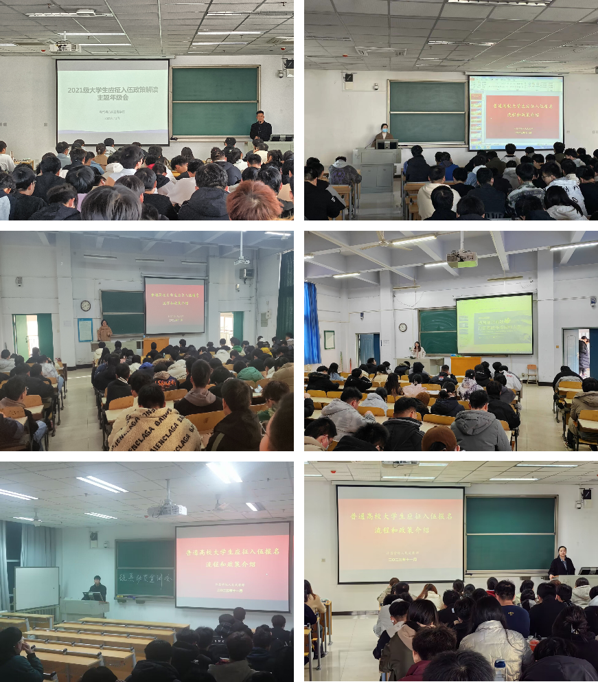 为进一步引导和鼓励我院大学生应征入伍,激发大学生携笔从戎、报效祖国的热情,我院于12月6日至12日,举办2024年春季大学生征兵政策宣讲会,会议由各年级辅导员主持召开。